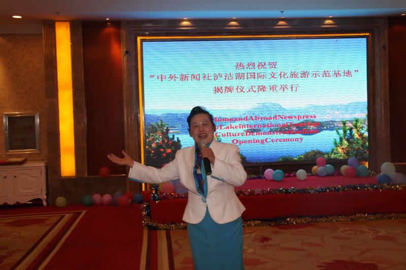 晚上7点,联合国国际合作协调局副局长兼新闻部部长、中外新闻社总裁韦燕,中共丽江市委宣传部副部长张文银,上海市政协委员、上海戏剧学院院长黄昌勇,泸沽湖银湖岛大酒店董事长周建华共同为“中外新闻社泸沽湖国际文化旅游示范基地”揭牌,摩梭青年男女载歌载舞,庆祝中外新闻社泸沽湖国际文化旅游示范基地揭牌仪式成功举行。