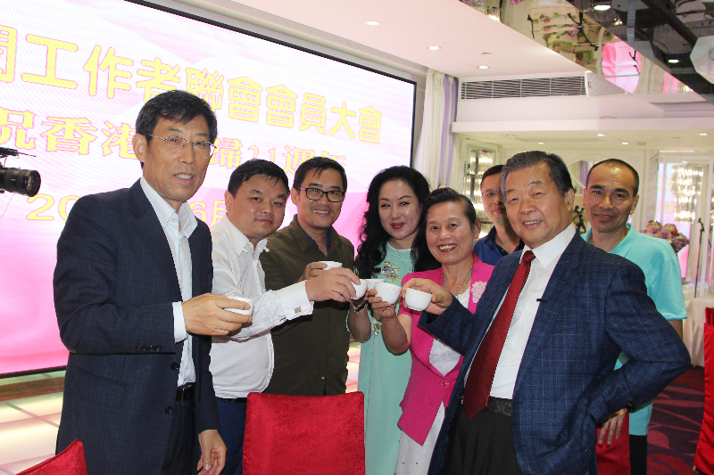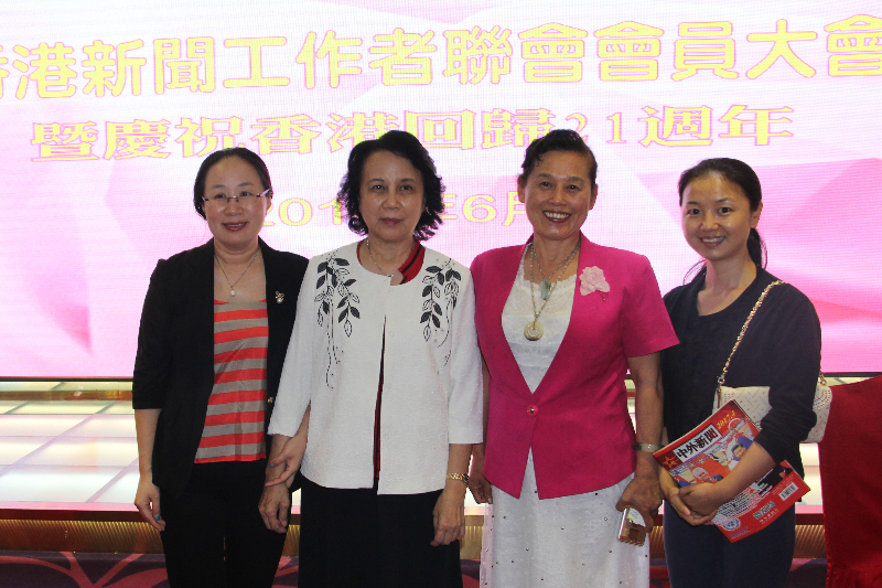 (中外新闻社 中外新闻网香港报道)6月26日上午,香港新闻工作者联会会员大会暨庆祝香港回归21周年纪念会在香港港岛伊莉莎白大厦皇室一号举行,中外新闻社总裁韦燕、社长吴荣林、执行社长刘登臣、常务理事廖仲新、刘暖尧、法制专题部主任陈彬云、国际项目部总监陆国杰、国际文化部总监许晗、理事李强出席。