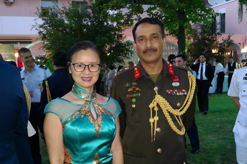 (中外新闻社 中外新闻网 北京报道)9月6日傍晚,巴基斯坦驻华使馆在大使官邸举行国防日招待会,到会人员包括各国驻华使节和武官代表,中外新闻社副社长黄晓君,首席翻译李伟,社长助理潘炳国等高层应邀出席。