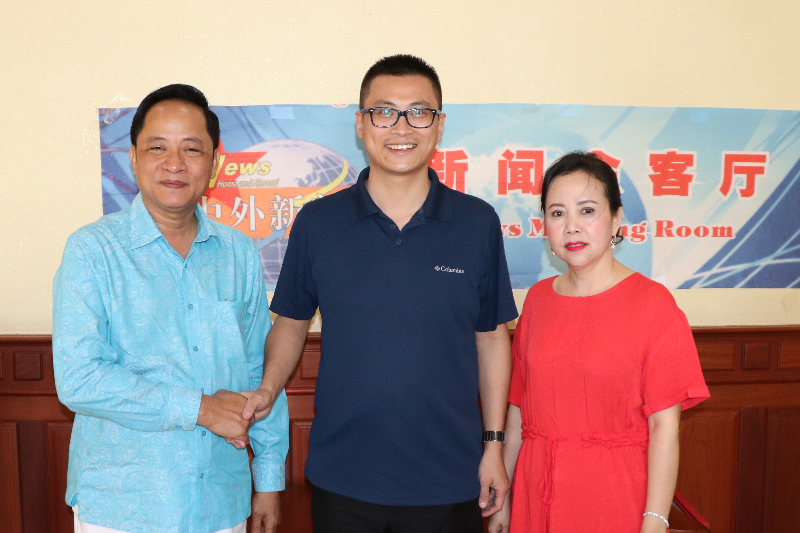 中外新闻社副总裁张珈闻同柬埔寨副总理特别顾问、内务部部长H.E. Huot Sophorn,柬埔寨副国务卿Mrs. Mean Sreyno在一起友好交流
