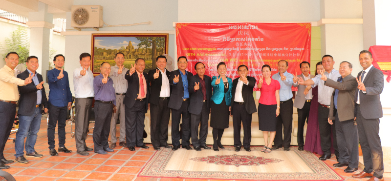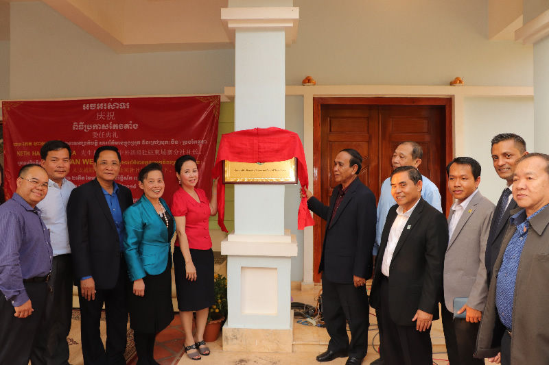 会上,柬埔寨国家新闻信息部副部长H.E.TAUCH SARETH、柬埔寨副国务卿Mrs.Mean Sreyno、中外新闻社总裁韦燕向中外新闻社驻柬埔寨分社社长KETH HACHKANNARA,中外新闻社驻柬埔寨分社西哈努克城新闻中心主任张春艳、副主任于立业颁发任职证书,之后韦燕总裁同与会部长为中外新闻社驻柬埔寨分社揭牌,并举行了座谈会。