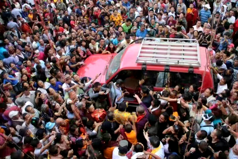 第八世吉宁活佛--咕噜仁波切转世教皇(活佛)2016年8月19日在尼泊爾如意满愿大佛塔登基,2010年11月在香港为中外新闻社加持佑护,当时蒙古国总理巴特包勒德一同见证并也接受咕噜仁波切教皇加持佑护。“时光过去了9年,中外新闻社发展很快。我再次祝福你们,中外新闻社发展会更快。”咕噜仁波切教皇说。中外新闻社总裁韦燕双手合+,感恩教皇,表示要为推动世界和平多做贡献……