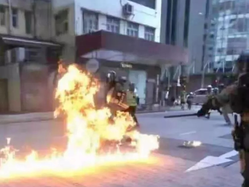 8月11日即前一天下午6时左右,有暴徒在香港深水埗大南西街向警察投掷汽油弹,一名警署内的警员被示威者从外投掷的汽油弹击中,下肢烧伤,初步诊断警员的左腿10%二级烧伤,右腿3%一级烧伤。香港警司协会主席陈民德总警司对记者表示,使用汽油弹袭击警察是极端暴力行为,是绝对不能接受的严重违法罪行,已经是恐怖主义行为。陈民德表示,根据香港法例第212章侵害人身罪条例,严重伤人罪可被判终身监禁。