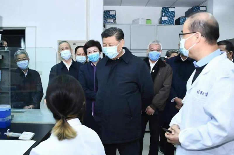 2日下午,习近平首先来到军事医学研究院,听取研究院关于新冠肺炎疫情防控科研攻关的总体情况汇报,结合展板和实物了解疫苗和抗体研制、药物筛选、病毒致病机理研究、快速检测试剂研究和应用等进展情况。在仪器测试楼,习近平察看了重大疫情应急防控药物研究室,向坚守岗位、奋力攻关的一线专家和科研人员表示亲切慰问。他强调,提高治愈率、降低病亡率,最终战胜疫情,关键要靠科技。习近平指出,新冠肺炎疫情发生以来,军事医学研究院坚决贯彻党中央和中央军委决策指示,闻令即动、争分夺秒,集中力量展开应急科研攻关,取得了阶段性成果,充分展现了人民军队忠于党、忠于人民的政治本色和敢打硬仗、善打胜仗的优良作风。习近平希望他们再接再厉,充分发挥突击队和主力军作用,尽快研制出安全有效的疫苗、药物、检测试剂,全力满足抗击疫情需要。要坚持在疫情可溯、可诊、可防、可治、可控方面合力攻关,通过打这场硬仗,掌握更多具有自主知识产权的核心科技,拿出更多硬核产品,为维护人民生命安全和身体健康、维护国家战略安全作出更大贡献。