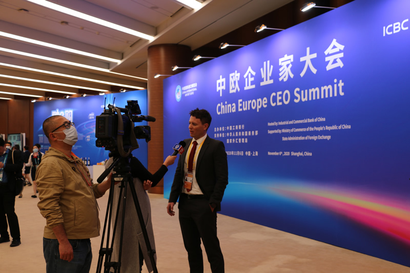 中欧企业家大会贵宾接受电视台记者采访