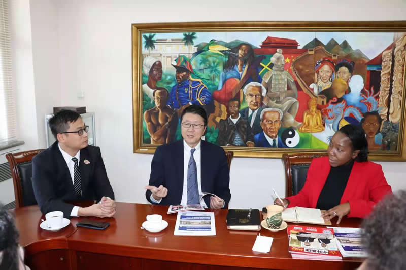 牙买加驻华大使丘伟基(Mr.Antonia Hugh)阁下会见中外新闻社韦燕总裁一行