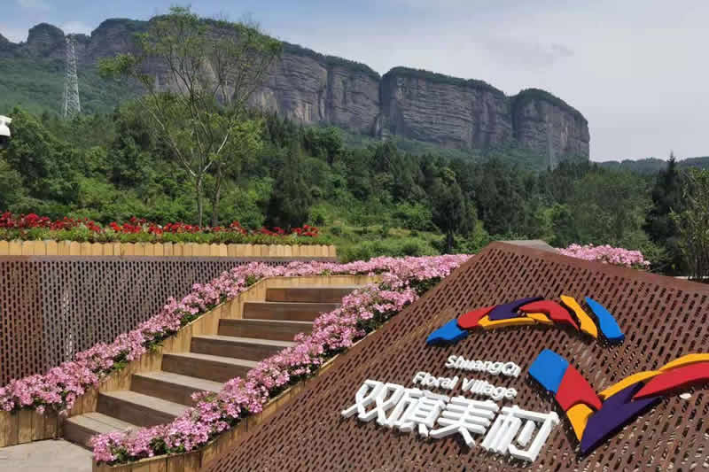 走进剑门关镇双旗美村记者看到:漫山遍野的花海缤纷亮眼,争芳斗艳;云彩浮动,在天空之境倒映,又在远处重叠,美如幻境。双旗美村围绕乡村休闲、精品民宿、乡野乐园、景观花海、研学户外营地等系列文旅项目,大力发展观光农业、科技农业和休闲农业,呈现世外桃源般的美好栖居体验。双旗美村是华侨城“100个美丽乡村”计划的重要项目。