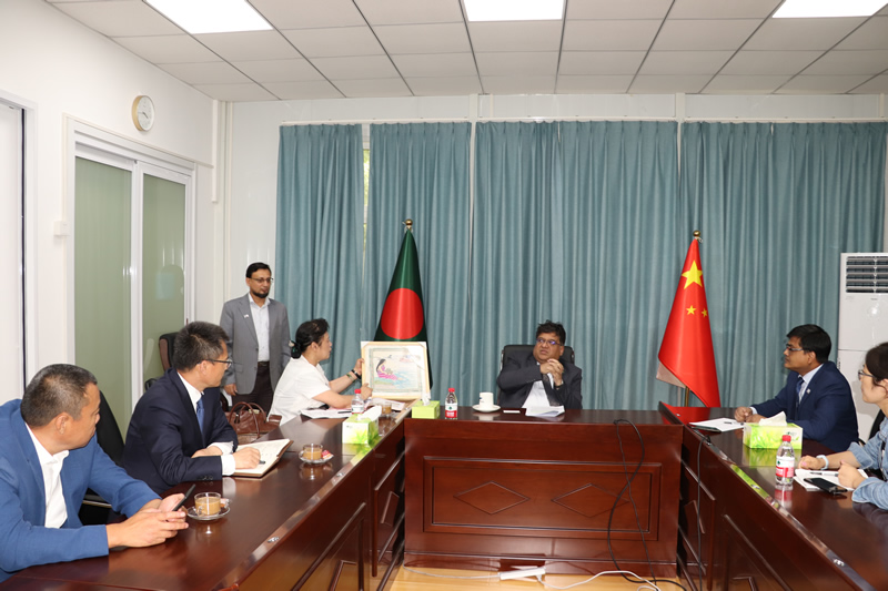 (中外新闻社 中外新闻网)由中外新闻社大使俱乐部主办的“20国驻华大使上海之旅”活动于2021年6月25日-28日在上海开展,共6场外交活动。6月8日,中外新闻社总裁韦燕、执行社长刘登臣、常务副总编胡树萌等到访孟加拉国驻华大使馆,同孟加拉国驻华大使马赫布•乌兹•扎曼阁下(H.E.Mr.Mahbub Uz Zaman)商谈中外新闻社“大使杯”高尔夫球邀请赛等事宜。