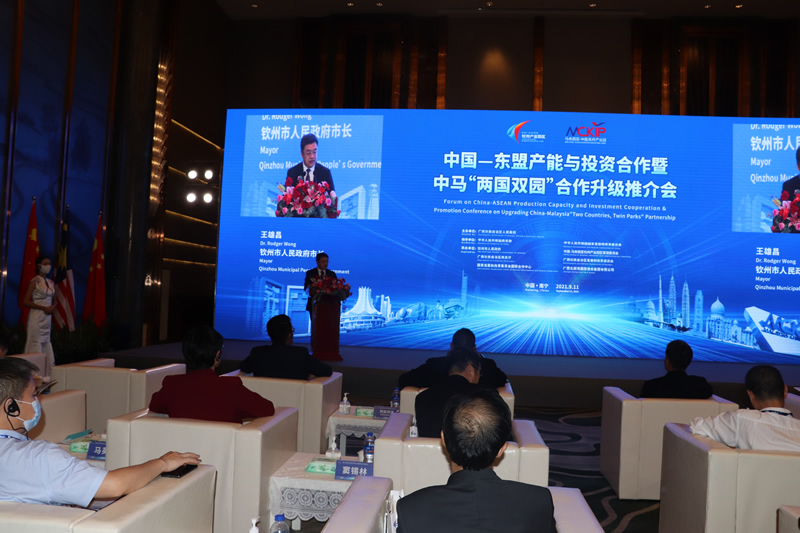 马来西亚国际贸易及工业部副部长拿督林万锋在视频致辞中指出:“中国一直是马来西亚的主要贸易伙伴。随着《区域全面经济伙伴关系协定》全面落实,未来马中经贸预料将有更大的发展前景。” 林万锋建议“两国双园”强化双边招商引资,鼓励更多中资企业进驻马中关丹产业园区,开拓东盟市场;另一方面也鼓励更多马来西亚企业到中马钦州产业园投资,以作为进入中国广大市场的窗户。