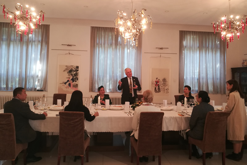 午宴上大家谈笑风生,韦燕总裁和大使、大使夫人共同回忆一起前往温州、成都、长沙、广州、汕头、上海等地考察,5年建立了深厚的友谊。大使说很想去西藏看看,了解当地人民群众真实的生活,以前去过一次,但是时间太短,期待再去。韦燕总裁表示,尽快安排,了却大使心愿。