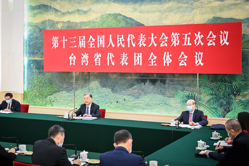 又讯:中共中央政治局常委、全国政协主席汪洋3月9日上午参加十三届全国人大五次会议台湾代表团审议。在听取陈军、符之冠、梁志强等代表发言后,汪洋指出,过去一年,在以习近平同志为核心的党中央坚强领导下,对台工作有为有效、稳中有进。当前世界百年变局加速演进,台海方向不确定不稳定性增多,但时、势、义始终在我们这一边,我们有应对各种复杂局面的综合实力和必胜信心。要贯彻新时代党解决台湾问题的总体方略和党中央对台工作决策部署,树牢底线思维,发扬斗争精神,坚持一个中国原则和“九二共识”,坚决反对“台独”分裂行径,坚决反对外部势力干涉,扎实推动两岸关系和平发展、融合发展。两岸同胞要把握历史大势,坚守民族大义,多谋增进同胞福祉之策,多做加强交流合作之事,多为促进心灵契合之举,携手共促祖国统一大业、民族复兴伟业。