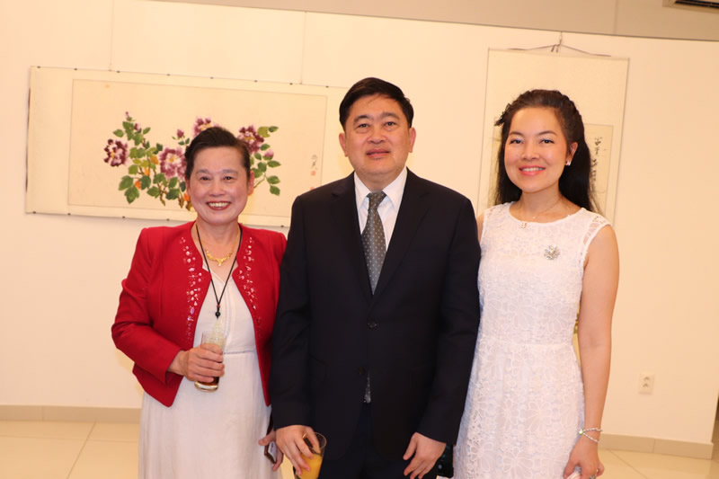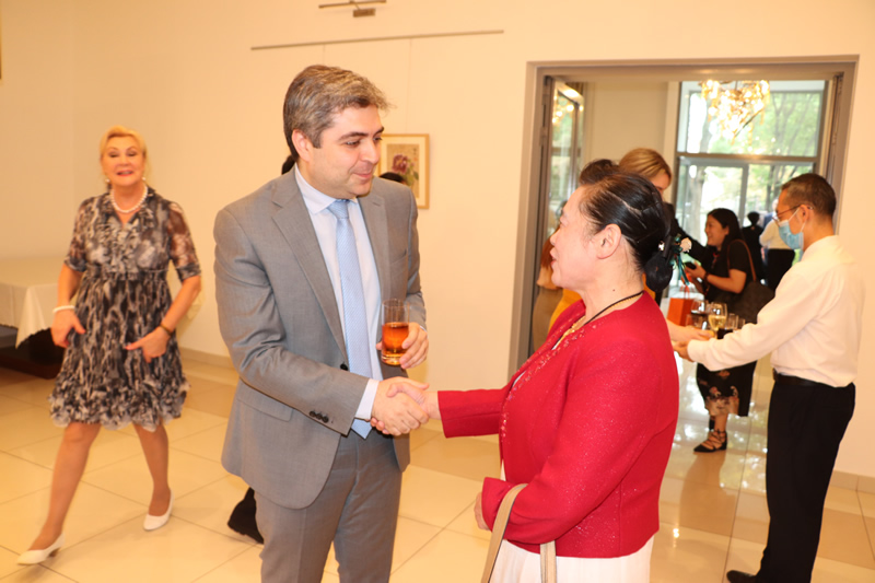 During the dinner, our journalists saw many peony paintings by Chinese calligrapher and painter Ma Zhenying hanging around the banquet hall. The peony flowers were vivid and beautiful, which symbolizes prosperity and happiness. All envoys from various countries gathered together to taste Slovak cuisine and Slovak red wine in the back garden. They were extremely happy to get reunion after the pandemic and wish the everlasting friendship between China and Slovakia.