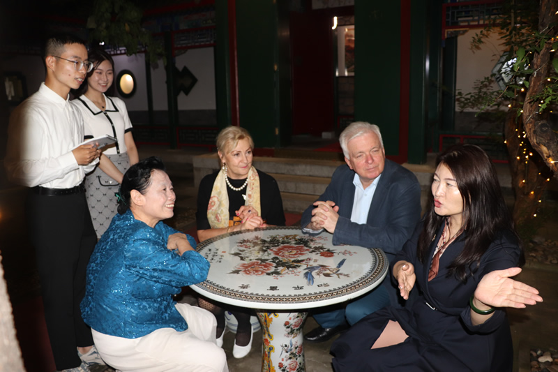 (中外新闻社 中外新闻网记者 班晓旭)10月2日,正值中国国庆假日,位于海淀区彩和坊南端,建于光绪年间,为清朝著名太监李莲英在海淀镇修建的三处宅院--彩和坊书院古典花园小桥流水,别具一格,给国庆节的相聚心情愉悦。中外新闻社总裁韦燕、执行社长刘登臣、副社长马澜、国际教育部总监刘桂英、国际项目部总监班晓旭等同中外新闻社大使俱乐部荣誉主席、斯洛伐克驻华大使杜尚•贝拉阁下(H.E.Mr.Dusan Bella)及夫人尤金尼亚•贝洛娃(Mrs.Eugenia Bellova)汇聚一堂,祝贺中华人民共和国73周年华诞,同时,商讨中外新闻社大使俱乐部2022年11月活动事宜。