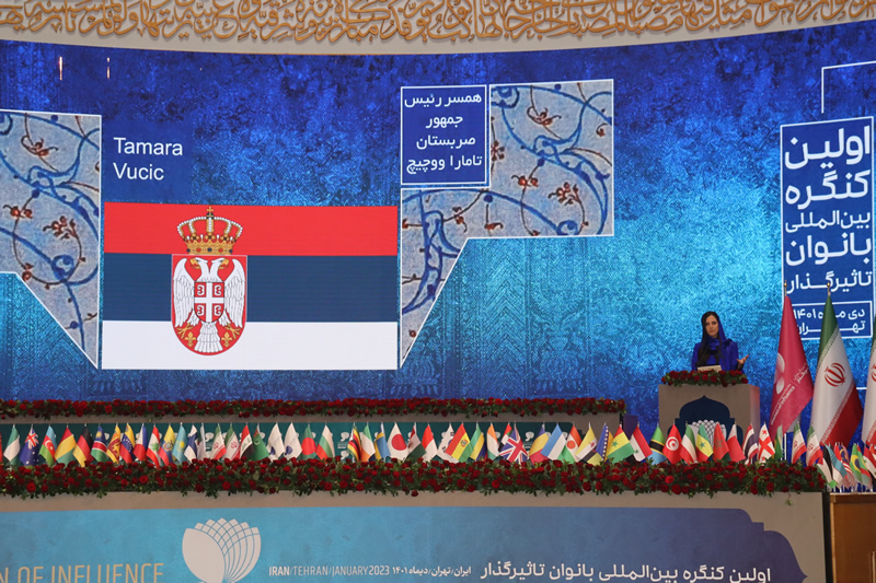 At the opening ceremony of the First International Congress for the Women of Influence, the wife of the President of Iran Mrs. Jamileh Alamolhoda, the wife of the Prime Minister of Armenia Mrs. Anna Hakobyan, the wife of the President of Iraq Mrs. Shanaz lbrahim Ahmad, the wife of the Prime Minister of Burkina Faso Mrs. Keylem De Tambela Kansole, the wife of the President of Kyrgyzstan Mrs. Aigul Japarova, the wife of President of Nicaragua Mrs. Rosario Maria Murillo Zambrana, the wife of President of Serbia Mrs. Tamara Vucic, the wife of President of Venezuela Mrs. Cilia Flores, and other presidents' spouses attended the conference and delivered speeches respectively.