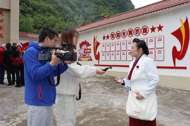 中外新闻社记者韦燕在接受城口电视台记者采访
