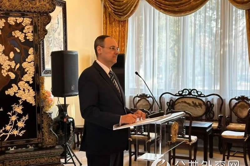 (中外新闻社 中外新闻网记者 刘登臣 张珈闻 乌仁)2025年11月22日,中外新闻社总裁韦燕等应邀在俄罗斯驻华大使馆的红房子见证俄罗斯沃洛格达州州长格奥尔基·菲利蒙诺夫在隆重的仪式上向吴彬授予俄罗斯友谊勋章。俄罗斯驻华临时代办谢尔盖·克拉明采夫向与会嘉宾致欢迎辞。
