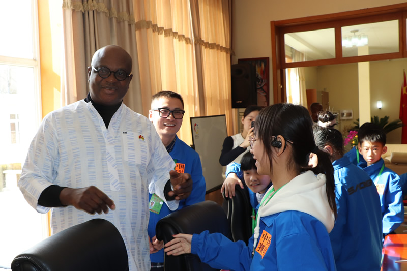 At 11:3 a.m., Ambassador Kojo Bonsu entered the embassy conference hall for the junior journalists. He shook hands with each student before delivering a welcome address. He said: “Today is the first time I have hosted so many young Chinese journalists at our embassy. I am delighted and extend a warm welcome to your visit. I have thoroughly enjoyed my time in China...”