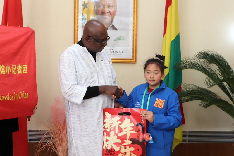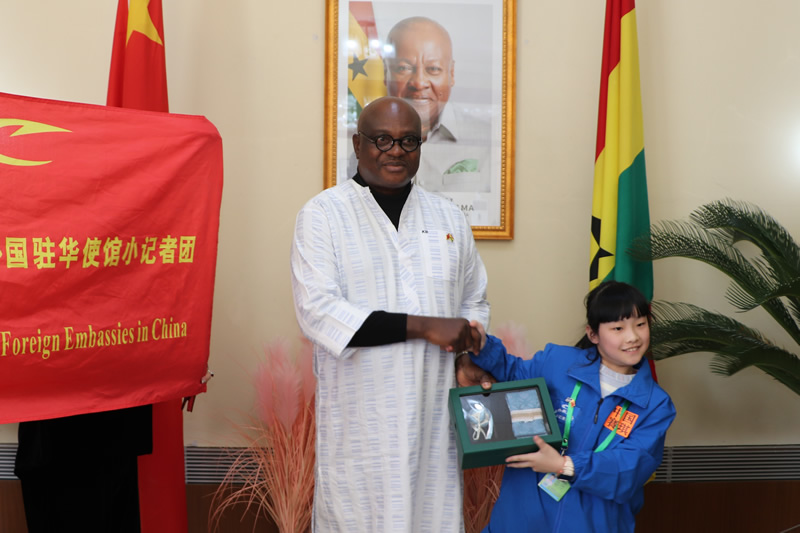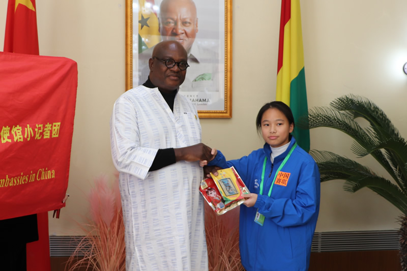 The Republic of Ghana is located in West Africa. Known for its abundant gold deposits, it was called the “Gold Coast” before independence. Ghana is also known as the “Home of Cocoa,” with one in every six chocolate bars worldwide reportedly using cocoa sourced from Ghana. On the morning of February 6th, Home and Abroad News Press junior journalists waved the national flags of China and Ghana as they entered the Ghanaian Embassy in China and had an exclusive interview with the new Ghana's Ambassador to China H.E. Mr. Kojo Bonsu.