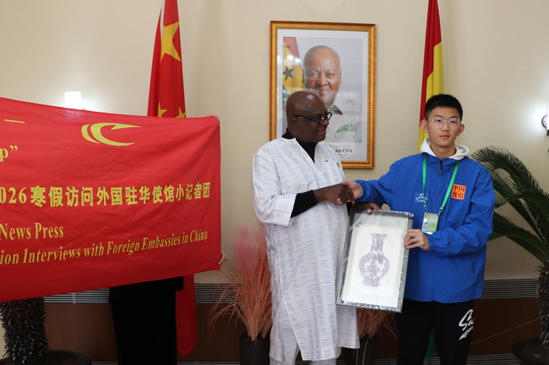 In the interview session, a junior journalist asked: “Hello, Ambassador! As a senior diplomat, you formally become the Ambassador of Ghana to China upon presenting your credentials to President Xi Jinping on January 16, 2026. In your views, how can young people from China and Ghana contribute their wisdom and strength to fostering friendly relations between our two nations? Thank you!”