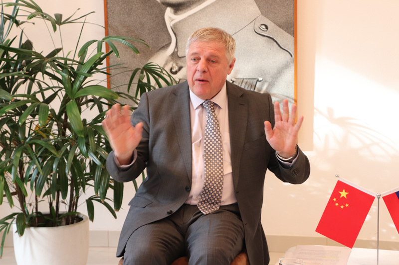 Ambassador Milan Lajčiak first delivered a welcome address and introduced the national situation of Slovakia. During the interview session, a junior jounalist asked: “Dear Ambassador, you are a senior diplomat with great experiences. 20 days ago, you presented your credentials to President Xi Jinping in Beijing and formally become the Ambassador of Slovakia to China. As the newly appointed Ambassador, how do you intend to contribute your wisdom and efforts to promoting the friendly relations between China and Slovakia? Thank you!”