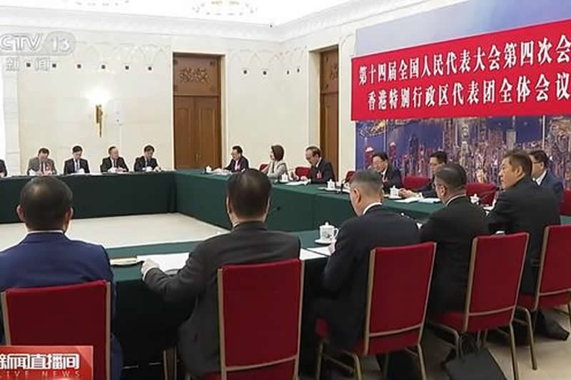 3月8日,十四届全国人大四次会议香港代表团在北京人民大会堂举行开放团组会议