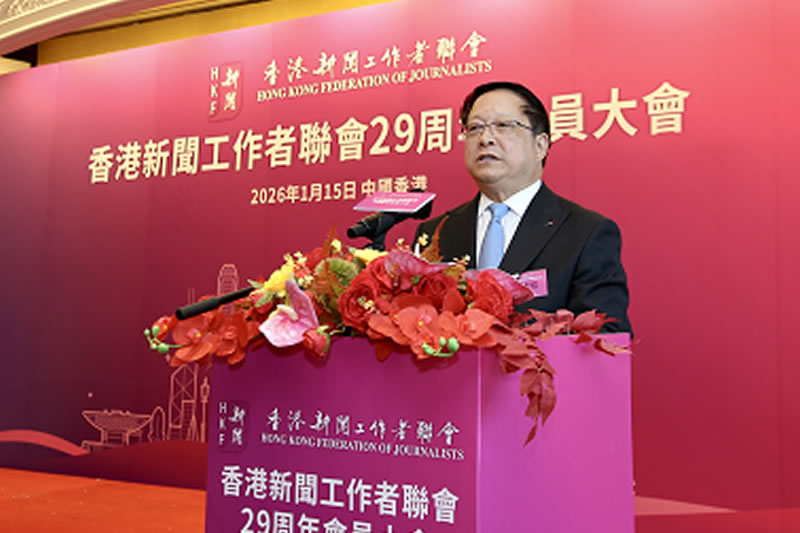 2026年1月15日,香港新闻工作者联会在香港召开29周年年会,香港政府新闻处处长廖李可期女士、中央驻港联络办宣传文体部副部长李曙光先生、香港行政长官办公室新闻统筹专员谢振中先生担任主礼嘉宾。中外新闻社总裁韦燕率本社15名会员出席。会上,韦燕总裁同香港新闻联主席李大宏、会长张国良进行友好交流,与会嘉宾及会员共同回顾过去一年的耕耘与收获,共商新阶段业界团结发展之大计...