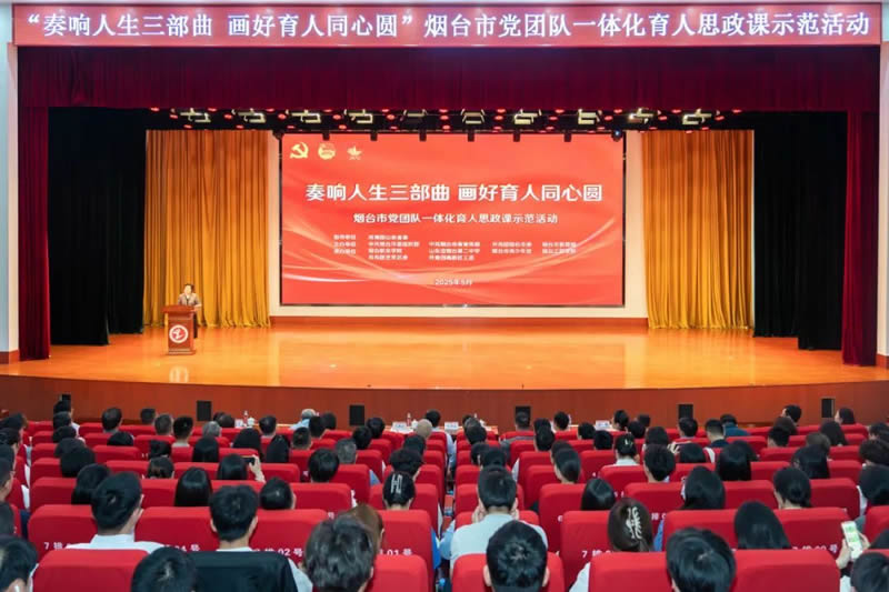 为深入贯彻落实党建带团建、队建的工作要求,打造党团队一体化育人链条,5月29日,由共青团山东省委指导,中共烟台市委组织部、中共烟台市委宣传部、共青团烟台市委、烟台市教育局联合主办的“奏响人生三部曲 画好育人同心圆”——烟台市党团队一体化育人思政课示范活动在烟台职业学院顺利举办。团省委有关部室负责同志,各主办、承办单位有关负责同志出席活动,来自全市的党员、团员、少先队员代表齐聚一堂,共同见证信仰的接力与青春的誓言。