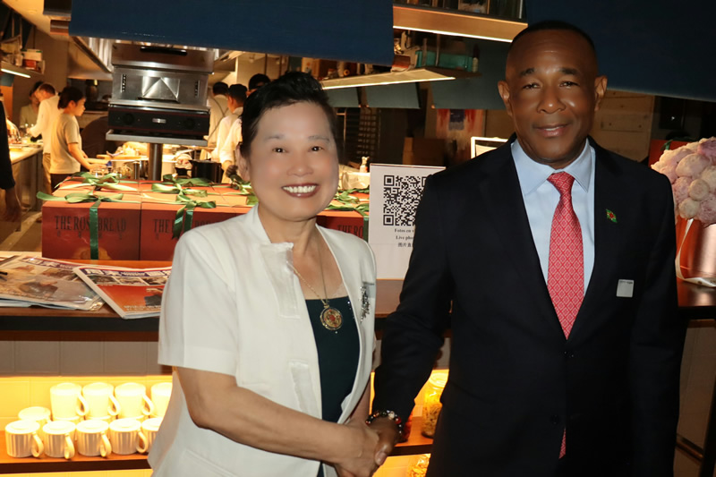 招待会现场, 韦燕总裁同出席乌拉圭驻华大使费尔南多•卢格里斯离任招待会的意大利驻华大使安博思阁下、阿根廷驻华大使马致远阁下、巴西驻华大使高望阁下、智利驻华大使阿乌马达阁下、玻利维亚驻华大使西莱斯阁下、巴哈马驻华大使贝瑟尔阁下、圭亚那驻华大使周雅欣阁下、多米尼克驻华大使查尔斯阁下等友好交流。