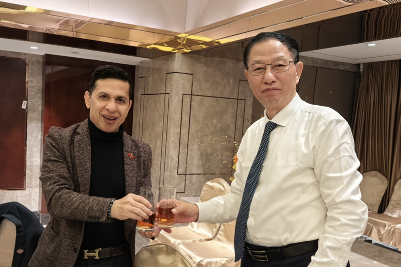 On November 17, 2025, Home and Abroad News Ambassadors Club Business Dinner was held in the International Banquet Hall on the 15th floor of China International Futures Co. President Wei Yan of Home and Abroad News Press led a delegation including Executive President Liu Dengchen, Vice President Chen Xi, Independent Director William of Hong Kong Morning Star International Investment Group, and Senior Vice President Mr. Alan Zhang to meet with Ambassador of the Democratic Republic of Timor-Leste to China H.E. Mr. Loro Da Silva Horta and Commercial Attache Mr. Aires Aparicio Guterres to discuss Hong Kong Morning Star International Investment Group's potential investment in large-scale financing projects with the Timor-Leste government.