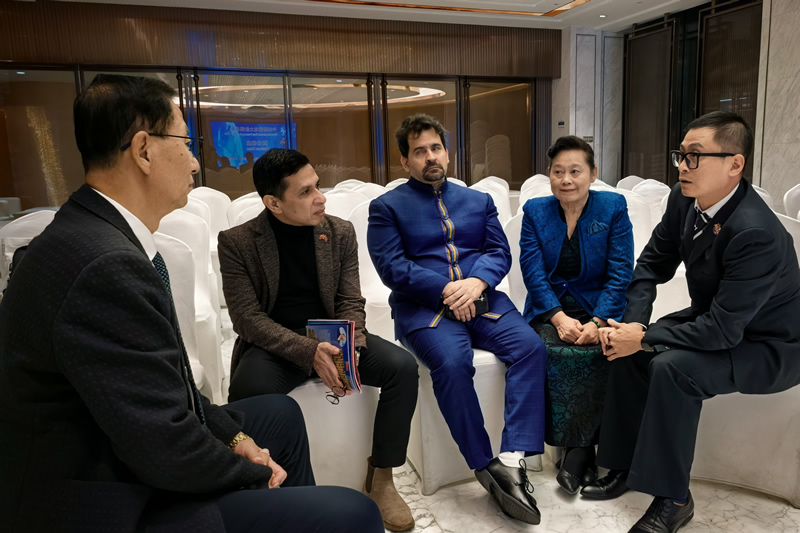 (中外新闻社 中外新闻网记者 陈熹)2025年11月17日, 中外新闻社大使俱乐部商务晚宴在中国国际期货15层国际宴会厅举行, 中外新闻社总裁韦燕率中外新闻社执行社长刘登臣、副社长陈熹、晨星国际投资集团独立董事威廉、晨星国际投资集团有限公司高级副总裁张珈闻等一行在现场拜会应邀出席商务晚宴的东帝汶民主共和国驻华大使罗瑞•奥尔塔阁下和商务参赞艾里斯·阿帕裏西奧·古特雷斯, 洽谈晨星国际投资集团投资东帝汶政府大型投融资项目的合作。
