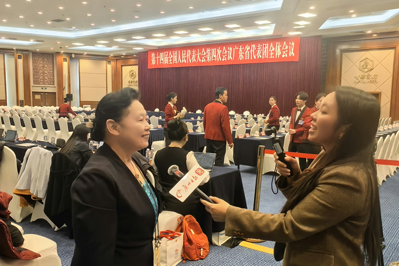 (中外新闻社 中外新闻网记者 韦燕 吴荣林)3月6日下午,十四届全国人大四次会议广东代表团在驻地举行全体会议,继续审议政府工作报告,审查“十五五”规划纲要草案,来自111家中外媒体的277名记者到会旁听,中外新闻社记者在会上就广东围绕粤港澳大湾区建设、产业升级、对外开放、人才引育等核心问题接受广州日报记者采访。