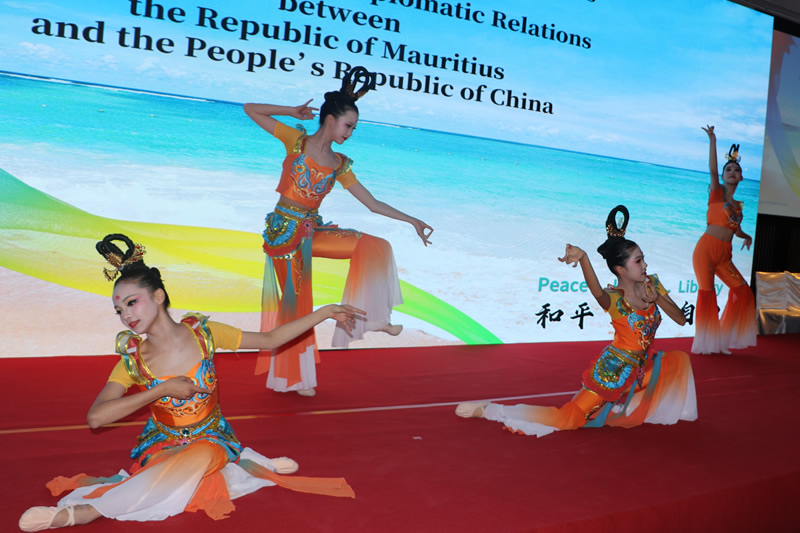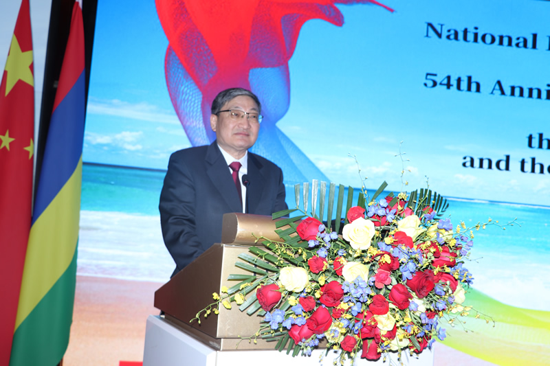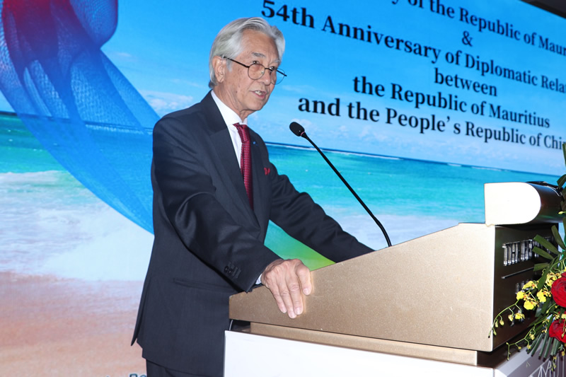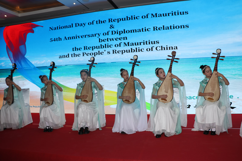 At 7:00 p.m., the national anthems of the Republic of Mauritius and the People’s Republic of China were played at the venue, followed by a welcome address by Ambassador of Mauritius to China H.E. Mr. Gaetan Michel Siew Hew Sam.