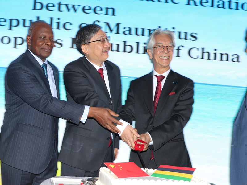 Ambassadors attending the reception included: Ambassador of Sri Lanka to China H.E. Mr. Majintha Joseph Priye, Ambassador of Malta to China H.E. Mr. John Busuttil, Ambassador of Pakistan to China H.E.Mr. Khalil Hashmi, Ambassador of Grenada to China H.E. Mr. Ian J. Marshall, Ambassador of Cabo Verde to China H.E. Mr. Arlindo Do Rosario, Ambassador of Ghana to China H.E. Mr. Kojo Bonsu, Ambassador of Croatia to China H.E. Mr. Dario Mihelin, Ambassador of Kenya to China H.E. Mr. Willy Bett, Ambassador of Malawi to China H.E. Mr. Allan Joseph Chintedza, Ambassador of Niger to China H.E.M. Garba Seyni, Ambassador of Bolivia to China H.E. Mr. Hugo Slies, Ambassador of the Bahamas to China H.E. Paulette Anne Bethel, Ambassador of Guyana to China H.E. Ms. Anyin Choo as well as ambassadors and diplomatic envoys from nearly 40 countries including Russia, Norway, Iraq, and the United Kingdom. Following the speeches, everyone raised their glasses to extend their best wishes for Mauritius’ National Day, and the guests in attendance joined in raising their glasses to celebrate this important moment. Subsequently, Ambassador of Mauritius to China H.E. Mr. Gaetan Michel Siew Hew Sam joined hands with Mr. Liu Yuxi to cut the celebratory cake. This symbolized Mauritius’s prosperous development and the enduring sweetness of China and Mauritia’s friendship.