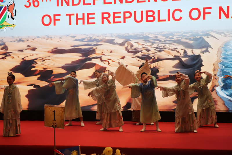 Ambassador Emwula said: “We are deeply honored that you have taken the time to attend tonight’s grand ceremony. For me personally, standing here today to participate in the 36th anniversary of Namibia’s independence fills my heart with pride and profound gratitude. This is a moment of great historical significance—it is both a tribute to and a celebration of the extraordinary journey of Namibia and its people, as well as an expression of our deepest respect to the Chinese people!” I congratulate China on the tremendous progress it has achieved in overcoming numerous challenges under the wise leadership of President Xi Jinping of the People’s Republic of China.