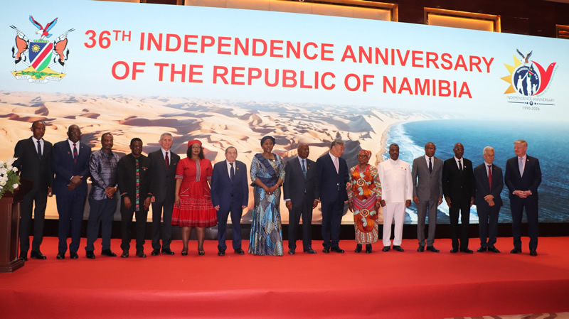 Vice Minister of Foreign Affairs of the People’s Republic of China Mr. Miao Deyu delivered a speech in which he extended warm congratulations on the 36th anniversary of Namibia’s independence, emphasized the traditional revolutionary friendship between China and Namibia, and highly commended Namibia’s support on issues concerning China’s core interests. He noted that since the establishment of diplomatic relations between China and Namibia, the two countries have achieved remarkable results in cooperation across various fields, including the economy, education, and infrastructure development. China will continue to support Namibia’s independent and self-reliant development and is willing to work hand in hand with Namibia to address global challenges, promote multilateralism, and advance the building of a community with a shared future for mankind.