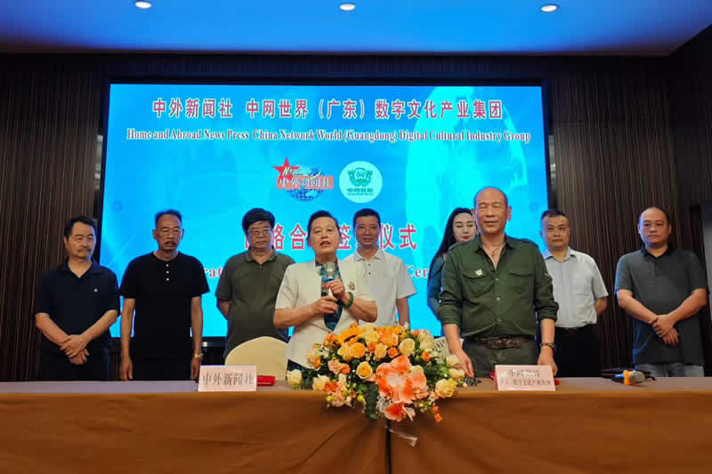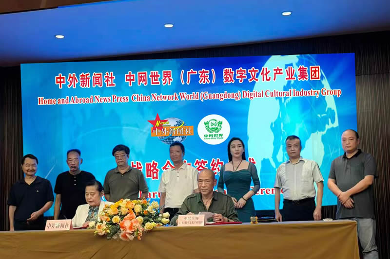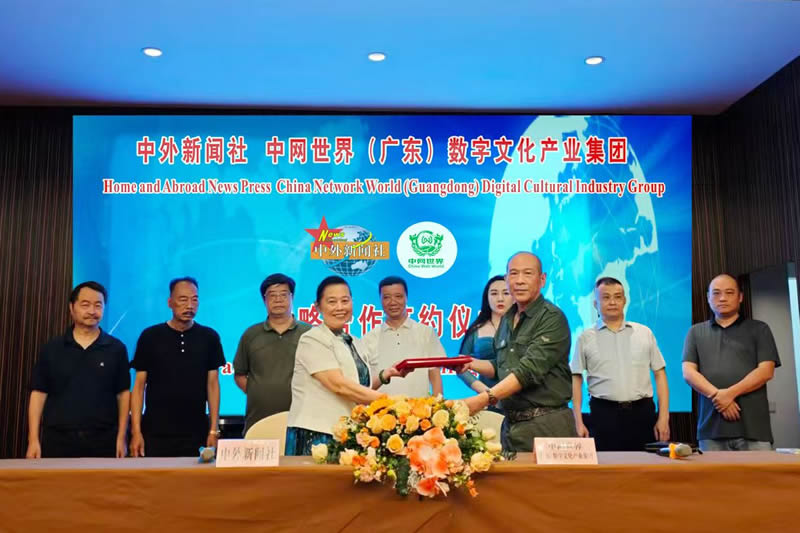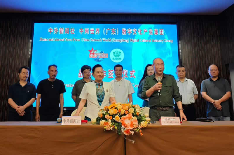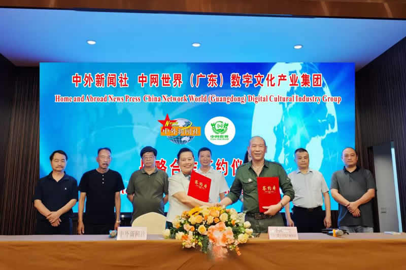 当天,中外新闻社总裁韦燕、中网世界(广东)数字文化产业集团董事长徐大良共同签署双方“合作备忘录”,中外新闻社理事会常务理事周见华、陈永贵,中网世界(广东)数字文化产业集团总经理杨任华等见证签约。至此,双方的深度合作为推动构建人类命运共同体走深走实取得实效。