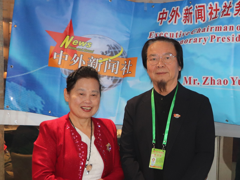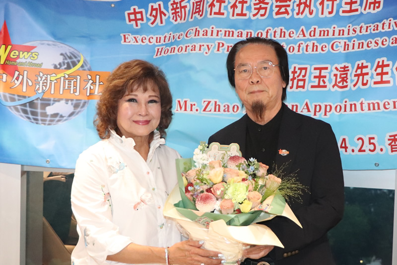 中外新闻社台湾分社社长陈姶Jìng向招玉远(Mr.Zhao Yuyuan)先生赠送鲜花以示祝贺