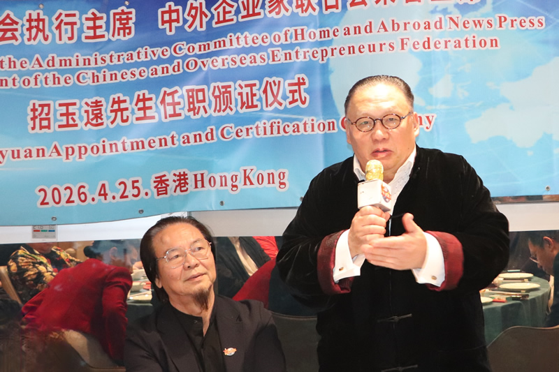 (中外新闻社 中外新闻网记者 程程)漫步维港两岸,感受海风温润,4月25日,在这座烟火与诗意并存、传统与时尚共生的城市,我们有幸相聚香港,共赴一场温暖之约--中外新闻社社务会执行主席、中外企业家联合会荣誉主席招玉远(Mr.Zhao Yuyuan)先生任职颁证仪式在香港中港中心17樓舉行。